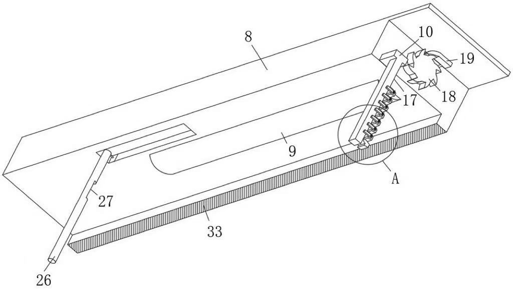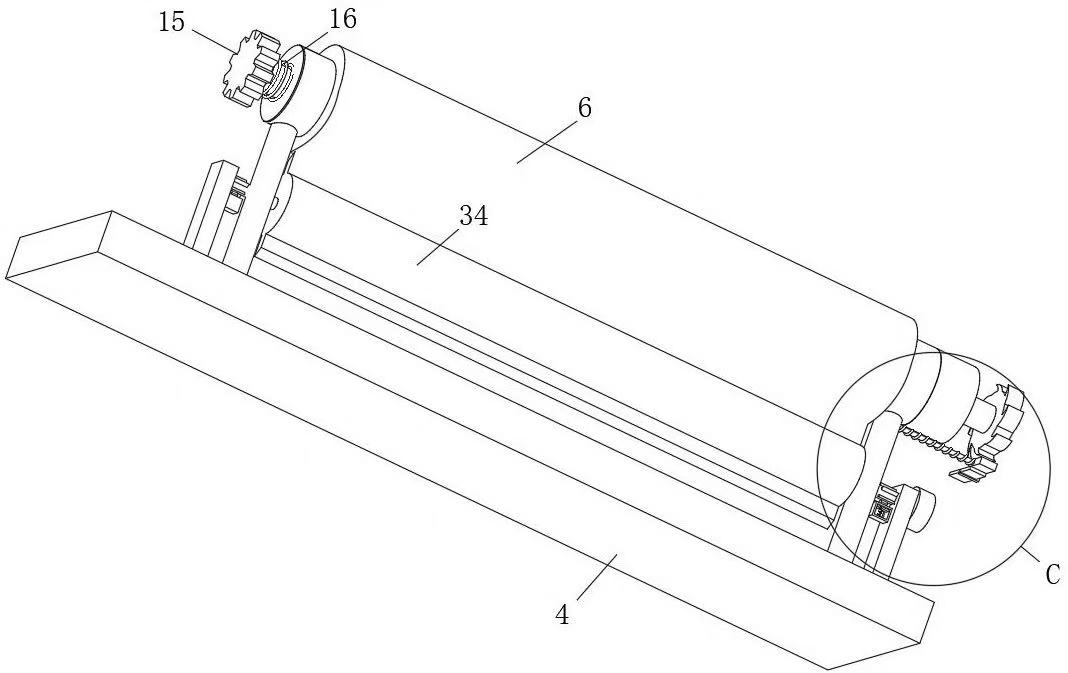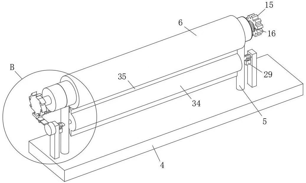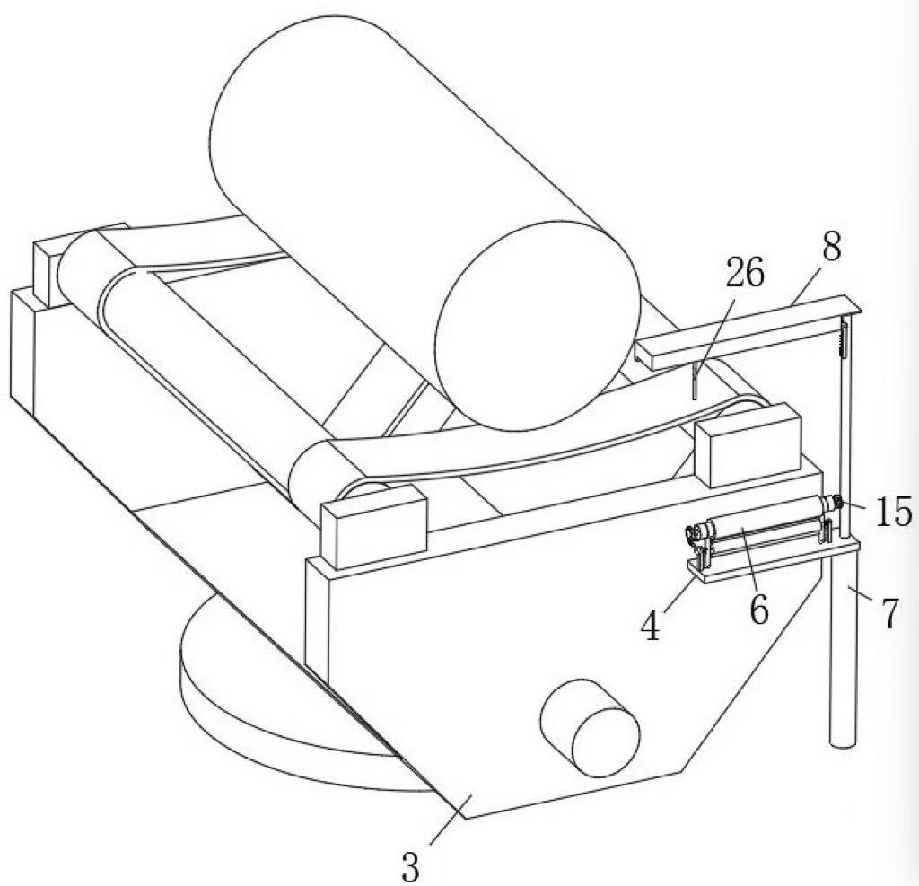 本发明可实现对第一胶辊的清理,使得第一胶辊保持洁净状态,避免第一胶辊在将打包膜向转台及第一胶辊之间的区域输送时出现打滑的情况,且可对清理第一胶辊的刮板进行清理,保证刮板的正常工作。