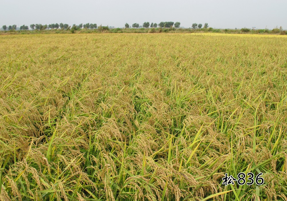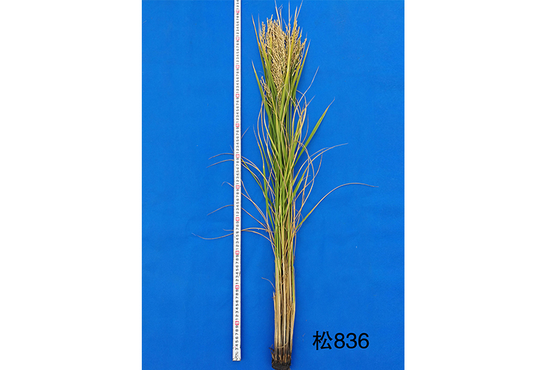 松836水稻品种由黑龙江省农业科学院五常水稻研究所以松98-131为母本、松804为父本杂交,系谱法选育而成。2018年通过黑龙江省审定。株高114.3厘米左右,穗长19.5厘米,平均每穗粒数125粒,千粒重25.2克,剑叶直立,散穗型,叶色黄绿,分蘖能力中上,粒型偏长,米粒透明,无腹白。2015年-2016年区域试验平均公顷产量8719.7公斤,较对照品种松粳9号增产7.3%;2017生产试验平均公顷产量8476.7公斤,较对照品种松粳9号增产8.0%。主要在黑龙江省第一积温带种植。