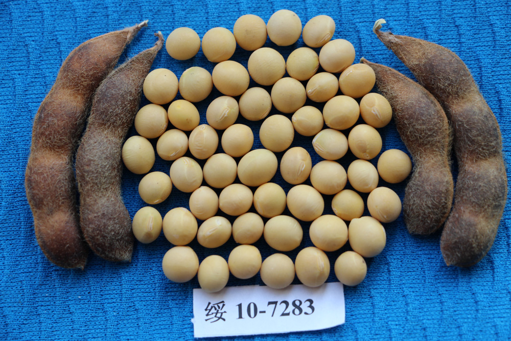 绥农48大豆品种由黑龙江省农业科学院绥化分院以绥农28为母本,以垦丰16为父本有性杂交,经五个世代系谱法选育而成,2017年被黑龙江省农作物品种审定委员会审定推广(黑审豆2017017),同年申请植物新品种权,该品种株高80厘米左右,无分枝,紫花,尖叶,灰毛,荚成熟时呈褐色。子粒圆形,种皮黄色,种脐黄色,无光泽,百粒重20克左右。生育日数117天,蛋白质含量38.71%,脂肪含量21.55%,中抗灰斑病,田间表现抗叶部病害,秆强抗倒伏。2014~2015两年区域试验平均公顷产量3103.6公斤,较对照品种合丰51增产4.2%;2016年生产试验平均公顷产量3172.2公斤,较对照品种合丰51增产8.1%。2017年专家对绥化分院60亩绥农48大豆新品种示范田进行测产,采点测得平均亩产为276.3公斤。适宜黑龙江省第三积温带种植。