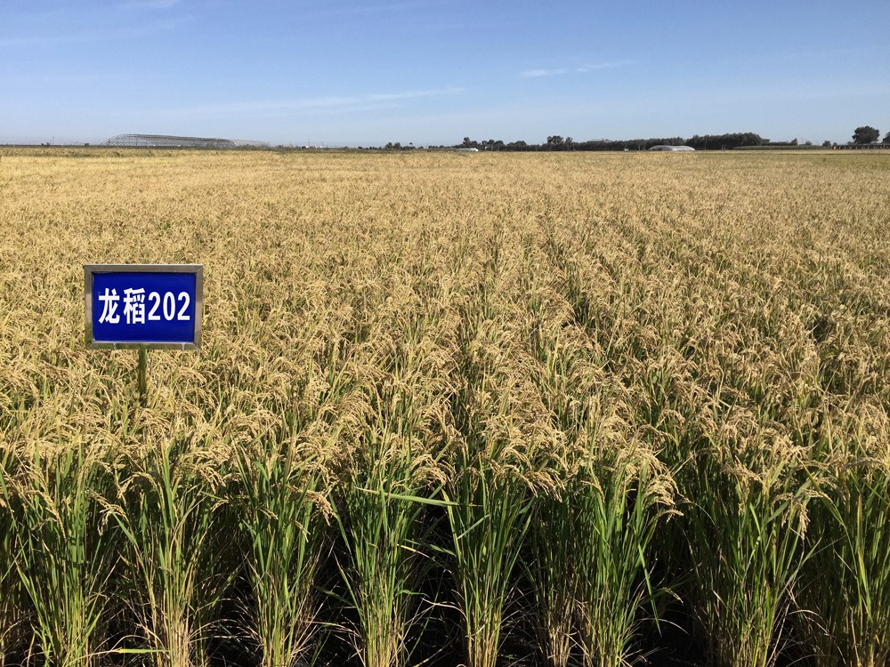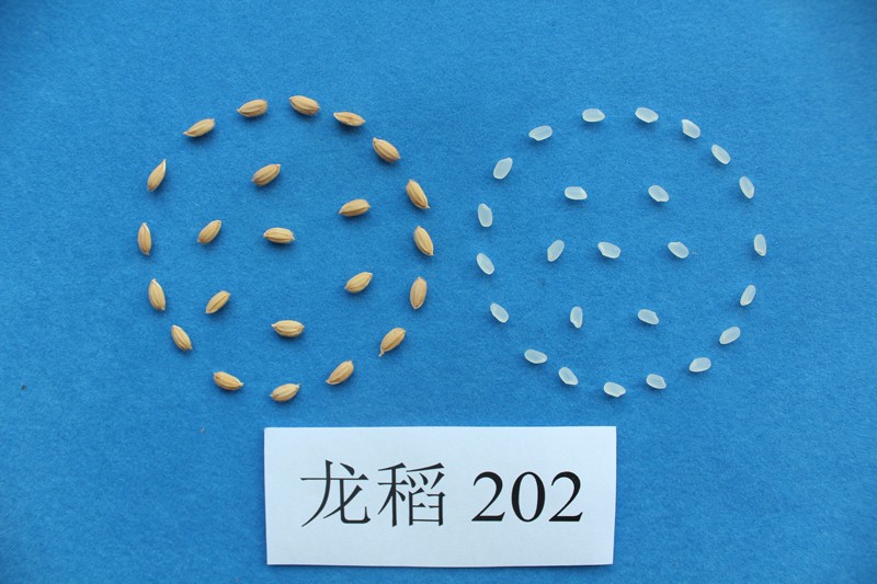 龙稻202水稻品种由黑龙江省农业科学院耕作栽培研究所育成,该品种是以五优稻4为母本、龙稻5为父本,系谱法选育而成,2018年通过国家审定,2017年获得植物新品种权。该品种主茎13片叶,株高103厘米左右,穗长18.1厘米左右,粒型椭圆,每穗粒数118.6粒左右,千粒重24.1克左右。米质主要指标:整精米率66.7%,垩白粒率17.7%,垩白度4.0%,直链淀粉含量17.1%,胶稠度61毫米,长宽比1.7。抗性:稻瘟病综合指数两年分别为1.9、2.8,穗颈瘟损失率最高级5级,中感稻瘟病。2016年参加早粳中熟组区域试验,平均亩产600.04千克, 2017年续试,平均亩产583.67千克,两年区域试验平均亩产592.33千克,2017年生产试验,平均亩产615.7千克,建议种植区域黑龙江省第二积温带上限、吉林省早熟稻区、内蒙古兴安盟中南部地区。