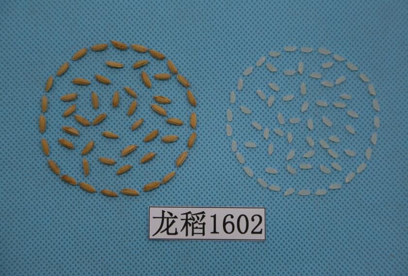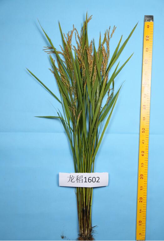 水稻品种龙稻1602由黑龙江省农业科学院耕作栽培研究所育成,该品种是以藤系140为母本、龙稻2号为父本,系谱法选育而成,2019年通过黑龙江省品种审定,2018年获得植物新品种权公告。普通粳稻。在适应区出苗至成熟生育日数130天左右,需≥10℃活动积温2350℃左右。该品种主茎11片叶,长粒型,株高87厘米左右,穗长18.6厘米左右,每穗粒数95粒左右,千粒重26.5克左右。品质分析结果:出糙率80.4%,整精米率67.9%,垩白粒米率6.0%,垩白度1.1%,直链淀粉含量(干基)17.00%,胶稠度80.7毫米,食味品质85分,粗蛋白(干基)6.40%,达到国家《优质稻谷》标准二级。三年抗病接种鉴定结果:叶瘟3级,穗颈瘟1~5级。三年耐冷性鉴定结果:处理空壳率19.3%~28.3%。
