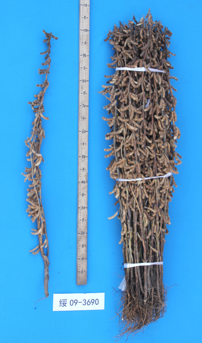 该品种属普通品种。在适应区出苗至成熟生育日数118天左右,需≥10℃活动积温2400℃左右。该品种为无限结荚习性。株高90厘米左右,有分枝,紫花,尖叶,灰色茸毛,荚弯镰形,成熟时呈褐色。子粒圆形,种皮黄色,种脐黄色,无光泽,百粒重21克左右。蛋白质含量40.68%,平均脂肪含量20.00%。抗病接种鉴定中抗灰斑病。田间表现抗病,秆强抗倒,节多,二三粒荚多,不炸荚,适应性好。