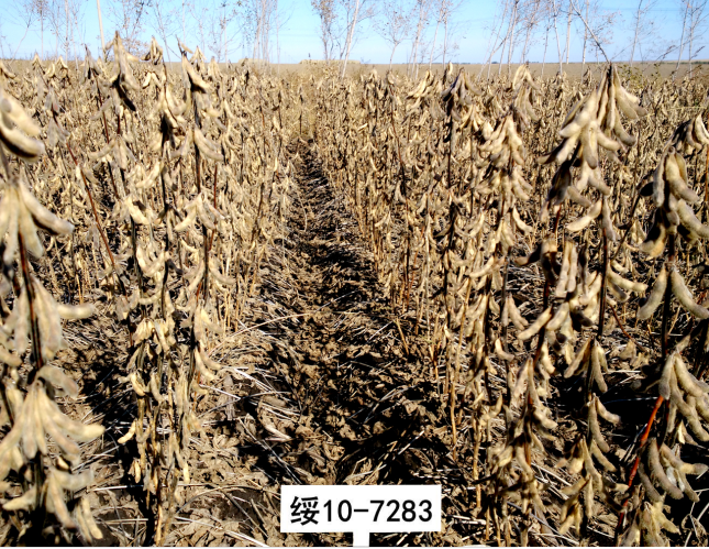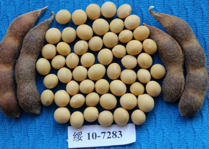 黑龙江省农业科学院绥化分院大豆研究室,以选育适宜黑龙江省第三积温带种植,蛋白质、脂肪含量总和≥60%,产量较对照品种增产≥8%,中抗灰斑病的大豆新品种为育种目标,采用有性杂交,杂种后代按既定的育种目标,系谱法定向选择。2007年以绥农28为母本,以垦丰16为父本进行有性杂交,同年冬在海南种F1代,2008年种F2代,同年冬季在海南种植F3代,2009年种植F4代,2010年种F5代12行,秋天决选4行,其中系统代号为0731-26.27-1-混-1的决选品系号为绥10-7283。2011-2012年在院内鉴定试验,2013年参加省第三积温带东部预备试验,2014-2015年参加省区域试验,2016年参加省生产试验。