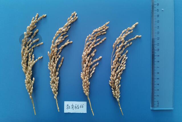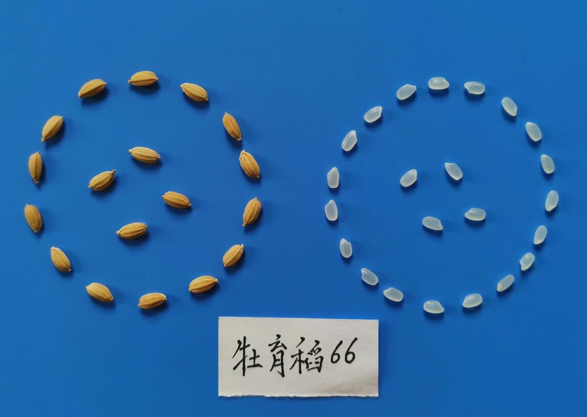 牡育稻66水稻品种由黑龙江省农业科学院牡丹江分院育成,该品种是牡00-1066母本、垦稻12为父本杂交,系谱法选育而成,2021年通过黑龙江省审定,2020年申请植物新品种权,品种权申请号:20201006823。该品种主茎11片叶,株高98.4厘米左右,穗长17.0厘米左右,粒型圆粒型,每穗粒数126粒左右,千粒重23.5克左右。
