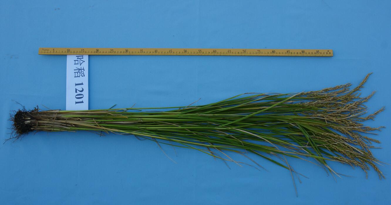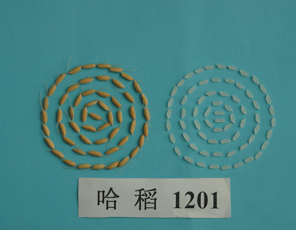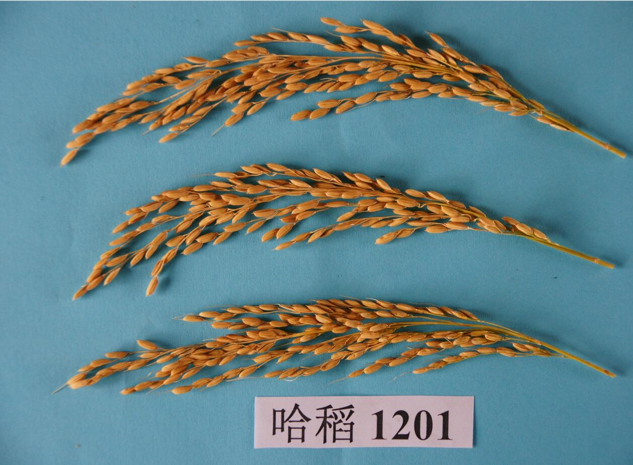 哈粳稻4号(哈稻1201)水稻品种由哈尔滨市农业科学院育成,该品种是以五优A为母本、以五优稻4号为父本杂交,系谱法选育而成,2018年通过黑龙江省审定,2018年申请植物新品种权并被受理,申请号:20183446.2。该品种主茎14片叶,株高108厘米左右,穗长21厘米左右,粒型长型,每穗粒数127粒左右,千粒重24.5克左右。