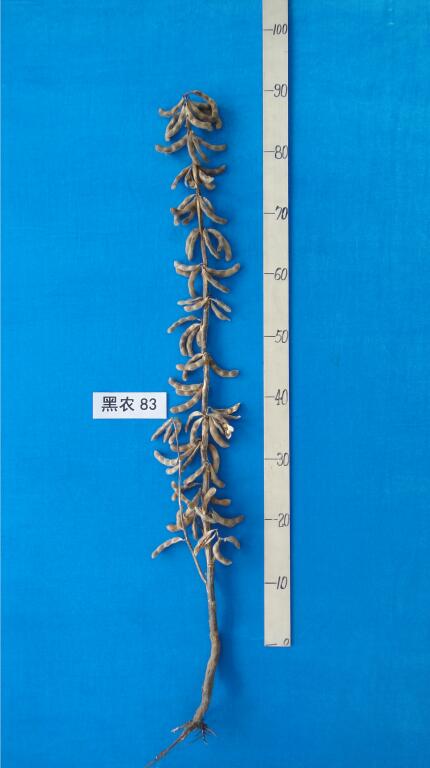 黑农83是黑龙江省农业科学院大豆研究所以60Co-γ射线120Gy处理黑农37的突变体哈交96-9为母本,合97-793为父本进行杂交,采用系谱法选育而成,2017年审定推广,审定号:国审豆20170008,品种权号为:CNA20172118.2。