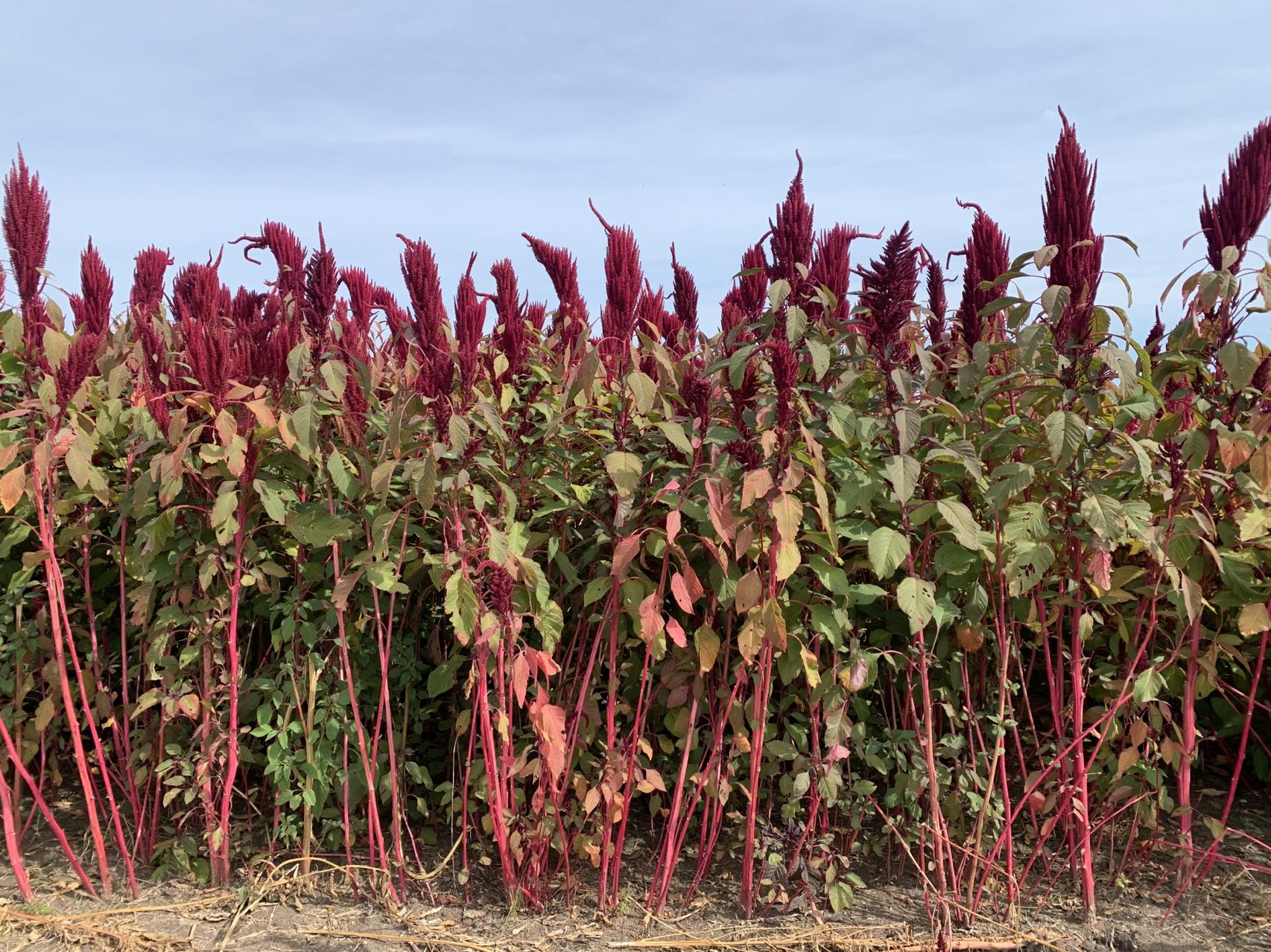 农菁13号籽粒苋品种由黑龙江省农业科学院草业研究所将美国籽粒苋k6经空间诱变处理后采用系谱选育方法,在SP6代穗行中,选择茎秆粗壮、分枝多、叶片宽大、无病害、整齐一致的株行,经过整理筛选选育而成。