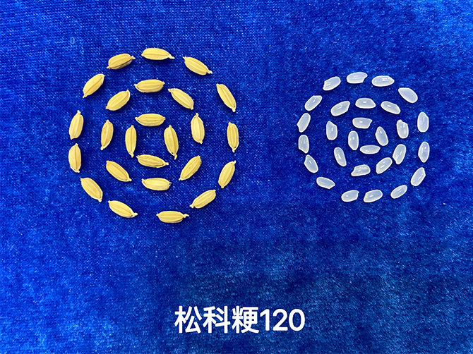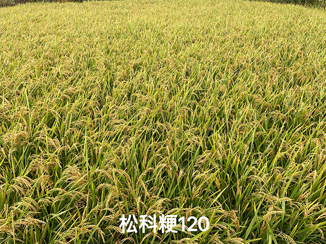 松科粳120由黑龙江省农业科学院五常水稻研究所和中国科学院遗传与发育生物学研究所于2009年夏季以龙稻5号为母本,以松粳6号为父本杂交,利用分子标记辅助选择技术选择孕穗期耐冷基因和抗稻瘟病基因,通过系谱选择法育成。2009年秋季获得F0 杂交粒15粒,2009年冬季在海南种植F1共10株,经鉴定无伪杂株,收获1200粒种子。2010年夏季,在五常水稻研究所试验地种植1000株F2群体,经过分子标记辅助选择含有耐冷基因和抗稻瘟病基因的群体212株。2010~2014年(F3、F5、F7、F9)冬季都在海南加代,2011~2014年(F4、F6、F8、F10)夏季在五常水稻研究所试验田进行田间种植观察选择,最终在2014年(F10)决选,命名为“松科粳120”。2015~2016年在宾县、道外区、肇源县、松北区、阿城区等5个地方进行多年多点异地鉴定试验,平均产量8945.6公斤/公顷,比对照品种龙稻18增产5.4%。在异地鉴定过程中,该组合在各点均表现出产量高、米质优、抗倒伏、抗病性强等特点,综合性状表现优良。2017~2018年参加黑龙江省农业科学院五常水稻研究所和中国科学院遗传与发育生物学研究所第一积温带下限熟期组品比试验,平均公顷产量9294.0公斤,比对照品种龙稻18增产8.3%。2019~2020年参加富尔科企水稻联合体第一积温带下限熟期组区域试验平均公顷产量8242.4公斤,较对照品种龙稻18增产5.9%;2021年参加富尔科企水稻联合体第一积温带下限熟期组生产试验平均公顷产量8463.2公斤,较对照品种龙稻18增产6.8%。