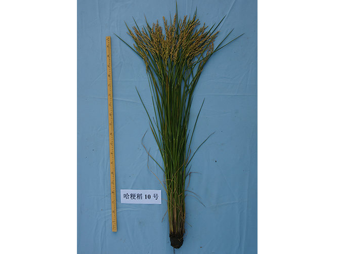 (一)品种来源:哈粳稻10号由哈尔滨市农业科学院于2013年以五优稻4号为母本,以哈粳稻3号为父本杂交,通过系谱选择方法育成。