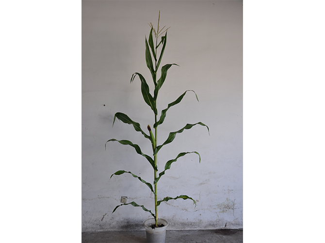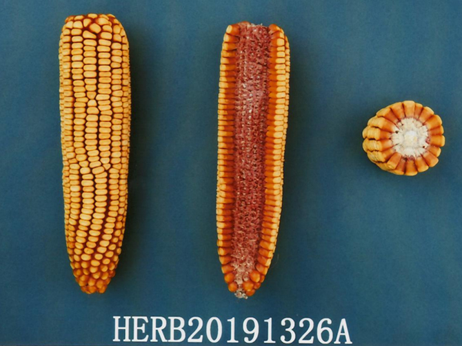 特征特性:东华北中早熟春玉米组出苗至成熟126.2天,比对照鑫鑫1号/吉单27晚熟0.3天。幼苗叶鞘紫色,叶片绿色,叶缘绿色,花药黄色,颖壳绿色。株型半紧凑,株高294.2厘米,穗位高110.3厘米,成株叶片数19.2片。果穗长锥型,穗长20.25厘米,穗行数14-18行,穗粗5厘米,穗轴红,籽粒黄色、马齿,百粒重35.85克。接种鉴定,感大斑病,感丝黑穗病,感灰斑病,中抗茎腐病,中抗穗腐病,籽粒容重736克/升,粗蛋白含量8.01%,粗脂肪含量3.62%,粗淀粉含量75.57%,赖氨酸含量0.26%。