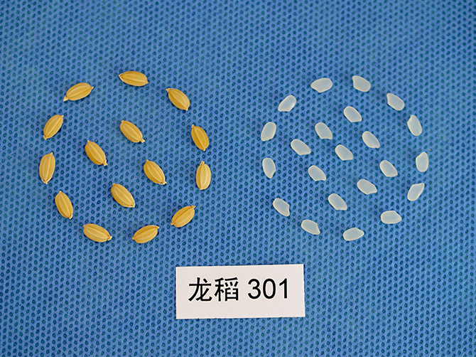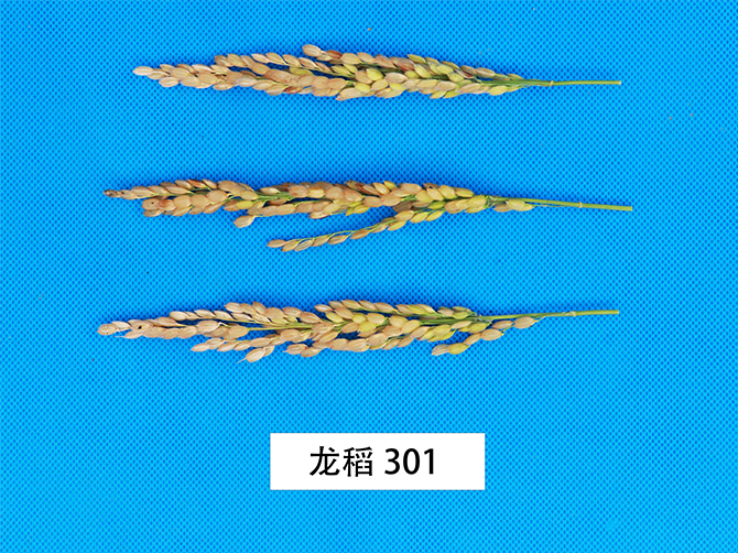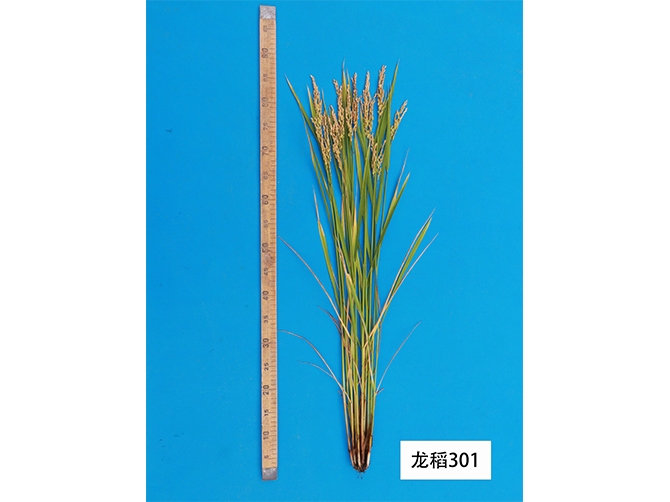 水稻品种龙稻301由黑龙江省农业科学院耕作栽培研究所育成,2023年通过黑龙江省品种审定。以龙稻345为母本、龙粳48为父本杂交,系谱选择结合分子辅助选择方法育成,适宜在黑龙江省第五积温带≥10℃活动积温2000℃区域种植。该品种主茎9片叶,株高93.7厘米左右,穗长16.3厘米左右,圆粒型,每穗粒数97粒左右,千粒重26.2克左右。两年品质分析结果:出糙率82.0%~83.4%,整精米率72.0%~74.0%,垩白粒米率2%~5%,垩白度 0.7%~1.2%,直链淀粉含量(干基)18.04%~18.09%,胶稠度 77 毫米,粗蛋白(干基)6.67%~7.61%,食味品质 80 分~83 分,达到国家《优质稻谷》标准二级。三年抗病接种鉴定结果:叶瘟 3~5 级,穗颈瘟 3~5 级。三年耐冷性鉴定结果:处理空壳率 8.9%~28.3%。抗倒伏能力强,产量表现为:2020~2021年区域试验平均公顷产量 8868.5 公斤,较对照品种黑粳 10号增产 6.7%;2022年生产试验平均公顷产量8781.7公斤,较对照品种黑粳 10 号增产 8.2%。