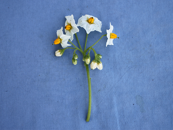 特征特性:中熟鲜食品种,生育期82天左右(从出苗到茎叶枯黄),株型直立,株高67厘米左右。植株繁茂性中等。花冠白色,花药橙黄色。块茎圆形,大而整齐,浅黄皮浅黄肉,表皮略麻,芽眼中等深度。商品薯率82.28%左右。耐贮性强,结薯集中,干物质含量17.5%,淀粉含量12.6%,粗蛋白含量2.09%,维生素C含量22.5毫克/100克,还原糖含量0.19%。食味品质优良。植株田间中抗晚疫病,抗PVX病毒病,中抗PVY,中抗PLRV病毒病。