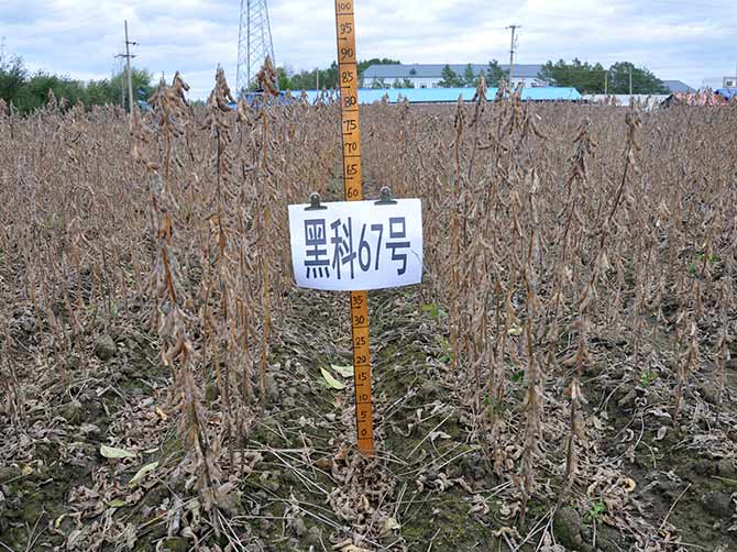 普通品种。在适应区出苗至成熟生育日数95天左右,需≥10℃活动积温1800℃左右。该品种为亚限结荚习性。株高75厘米左右,有分枝,紫花,尖叶,灰色茸毛,荚镰刀形,成熟时呈褐色。籽粒圆形,种皮黄色,种脐黄色,有光泽,百粒重19克左右。三年平均品质分析结果:蛋白质含量38.63 %,脂肪含量21.07 %。三年抗病接种鉴定结果:中抗灰斑病。