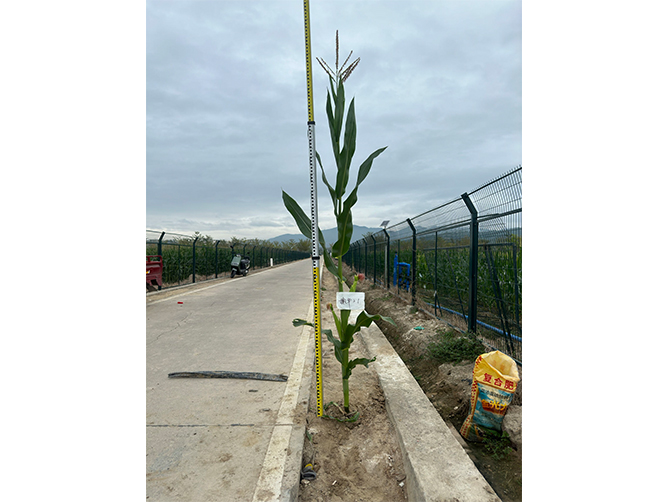 特征特性:在适应区出苗至成熟生育日数为125天左右,需≥10℃活动积温2600℃左右。该品种幼苗期第一叶鞘紫色,叶片绿色,茎绿色。雄穗一级分枝3~6个,颖壳紫色,花药紫色,花丝紫色。株高295厘米,穗位高105厘米,成株可见17片叶。果穗长筒型,穗轴红色,穗长19.9厘米,穗粗5.2厘米,穗行数16~18行,籽粒马齿型、黄色,百粒重38.9克。中抗大斑病,丝黑穗病发病抗镰孢穗腐病。