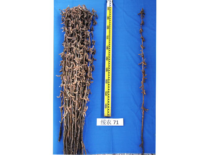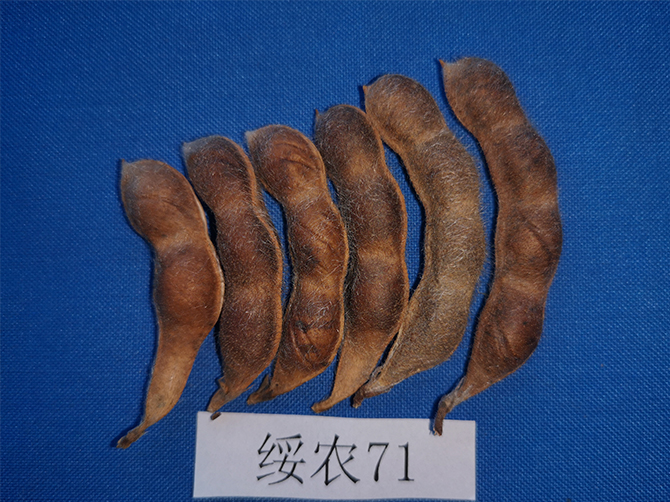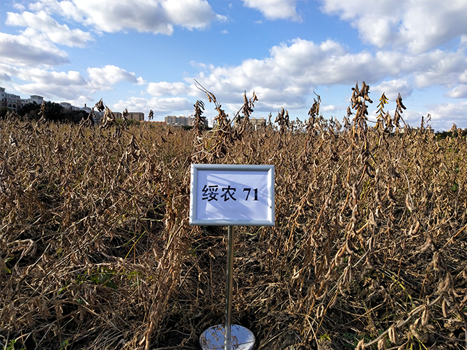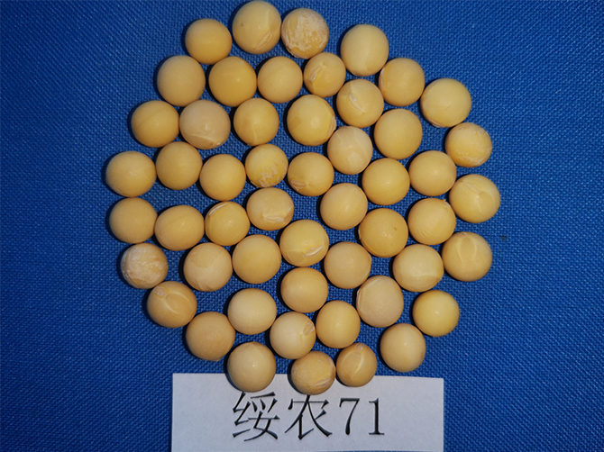 黑龙江省农业科学院绥化分院大豆研究室,以选育适宜黑龙江省第二积温带种植,蛋白质、脂肪含量总和≥60%,产量较对照品种增产≥5%,中抗灰斑病的大豆新品种为育种目标,采用有性杂交,杂种后代按既定的育种目标,系谱法定向选择。黑龙江省农业科学院绥化分院大豆所采用有性杂交,杂种后代按既定的育种目标,系谱法定向选择。2011年以黑农54为母本,以东农48为父本进行有性杂交,同年冬在海南种F1代。2012年种F2代,同年冬季在海南种植F3代。2013年种F4代。2014年种F5代,秋天决选品系号为绥14-9947。2015~2016年在院内产量鉴定试验。以代号绥农71参加2017~2018年省区域试验。2019年省生产试验。