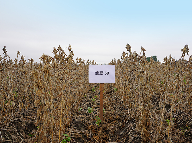 特征特性:普通品种。在适应区出苗至成熟生育日数100天左右,需≥10℃活动积温1850℃左右。该品种亚有限结荚习性。株高77厘米左右,无分枝,紫花,尖叶,灰色茸毛,荚直形,成熟时呈褐色。种子圆形,种皮黄色,种脐黄色,有光泽,百粒重21克左右。三年品质分析平均结果:蛋白质含量39.63%,脂肪含量20.17%。三年抗病接种鉴定结果:中抗灰斑病。