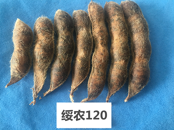黑龙江省农业科学院绥化分院大豆研究室,以选育适宜黑龙江省第三积温带种植,蛋白质、脂肪含量总和≥60%,产量较对照品种增产≥5%,中抗灰斑病的大豆新品种为育种目标,采用有性杂交,杂种后代按既定的育种目标,系谱法定向选择。黑龙江省农业科学院绥化分院大豆研究所2014年以绥农52为母本,以绥14-9373为父本进行有性杂交,同年冬在海南种F1代。2015年种F2代,同年冬季在海南种植F3代。2016 年种F4代。2017年种F5代,秋天决选品系号为绥17-8338。2018~2019 年在所内鉴定试验。以试验名称绥农120参加2020~2021年黑龙江省大豆区域试验。2022年参加省生产试验。