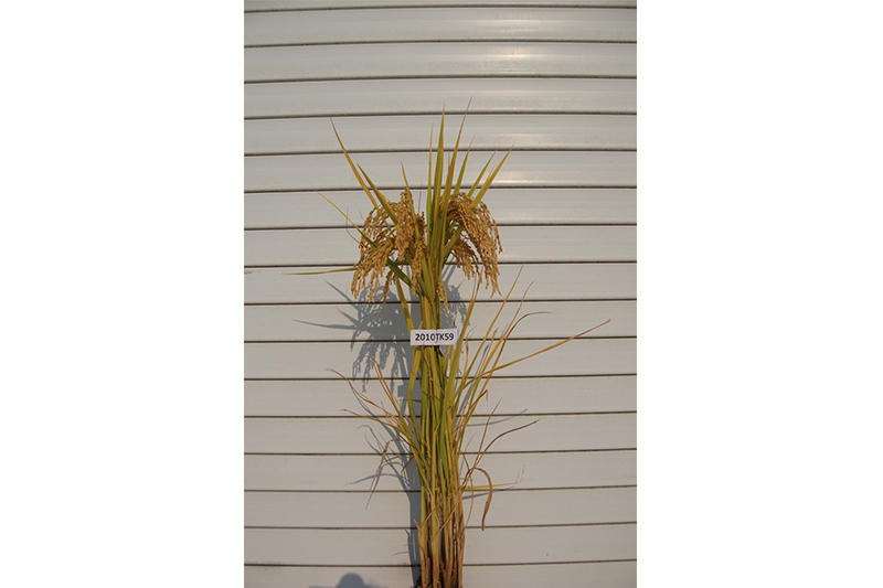 吉粳515由吉林省农业科学院水稻研究所育成,以吉粳88为母本,吉粳101为父本杂交,变异后代经系谱法选择育成。2016年通过吉林省农作物品种审定委员会审定,审定编号为吉审稻2016006。株高111.0厘米,株型紧凑,分蘖力强,剑叶上举,茎叶绿色,每亩有效穗数24.4万。穗长18.3厘米,弯曲穗型,平均穗粒129.2粒,结实率87.5%。谷粒椭圆,颖及颖尖黄色,稀少芒,千粒重25.0克。依据农业部NY/T593-2002《食用稻品种品质》标准,糙米率83.7%、 精米率71.9%、整精米率66.8%、粒长4.6㎜、长宽比1.7、垩白率13%、垩白度5.3%、透明度2级、碱消值7级、胶稠度72㎜、直链淀粉含量17.0%、蛋白质含量5.98%。米质符合三等食用粳稻品种品质规定要求。2012~2015连续四年采用苗期分菌系人工接种、成株期病区多点异地自然诱发鉴定,结果表明对苗瘟表现中抗(MR),叶瘟表现中感(MS),穗瘟表现中感(MS)。2012~2015年,在26个抗纹枯病田间自然诱发有效鉴定点次中,最高病级7级,表现中感(MS)。区域试验平均公顷产量9884.1公斤,生产试验平均公顷产量9004.1公斤。中晚熟品种,生育期142天,需≥10℃积温2850℃左右。适宜吉林省四平、吉林、长春、通化、辽源、松原、延边等中熟稻区种植。