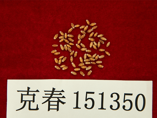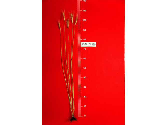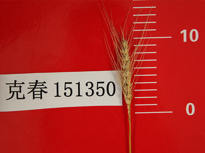 特征特性:克春151350小麦品种在适应区出苗至成熟生育日数88天。该品种幼苗直立,株型收敛,株高89.3cm。小穗数一般为13~19个,穗纺锤型,有芒,千粒重36.1g。三年抗病接种鉴定结果:对秆锈病21C3CTR、21C3CFH、34C2MKK、34MKG等均表现为免疫,中感赤霉病,中感根腐病。经农业部谷物及制品质量监督检验测试中心(哈尔滨)2020~2021年连续两年分析,蛋白质含量15.95%~17.74%,湿面筋含量32.6%~36.6%,稳定时间4.3分钟~9.1分钟,容重772~799克/升,抗延阻力261~610EU,延伸性17.6~18.9cm。