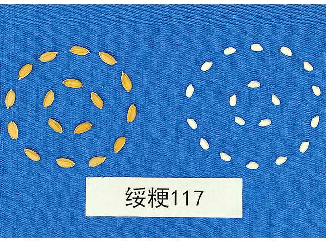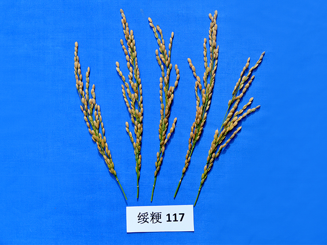 选育过程:绥粳117由黑龙江省农业科学院绥化分院于2010年以绥糯4397-1为母本,垦稻11为父本进行有性杂交,F0、F1混合脱粒,F2 、F3、F4、F5、F6单株选择,2017年F7决选,决选区号为绥粳117。其详细选育过程如下:2010年在黑龙江省农业科学院绥化分院试验地内以绥糯4397-1为母本(绥糯4397-1是以绥粳3号为母本,普粘7号为父本杂交后自交6代选育而成),以垦稻11为父本进行有性杂交,产生F0种籽15粒;2011年在单位内试验地单株种植F1,去掉伪杂种,混收全部F2糯稻种子;2012年春将F2种子选粒型饱满的种植在单位内试验地,秋季对高产、抗病、抗倒的株系进行单株选择,当年选择收获30个F3糯稻单株株系,室内对30个株系进行品质分析,入选单株20个;2013年春在单位内试验地将上年入选的20个F3按株系单株种植,秋季对抗病、高产、抗倒的株系进行单株选择,室内进行品质分析,选择收获10个F4糯稻株系;2014年春在单位内试验地将上年收获的F4共10个株系按株系单株种植,秋季对抗病、抗倒、高产的株系进行单株选择,室内进行品质鉴定,选择收获5个F5株系;2015年春在单位内试验地将上年收获的F5共5个株系按株系单株种植,秋季对抗病、抗倒、高产的株系进行单株选择,室内进行米质鉴定,选择收获5个F6株系;2016年春在单位内试验地将上年收获的F6共5个株系进行产量鉴定和品质分析,选择收获5个F7株系,2017春在单位内试验地将上年收获5个的F7株系进行产量鉴定和品质分析,决选出1个稳定糯稻株系绥粳117。