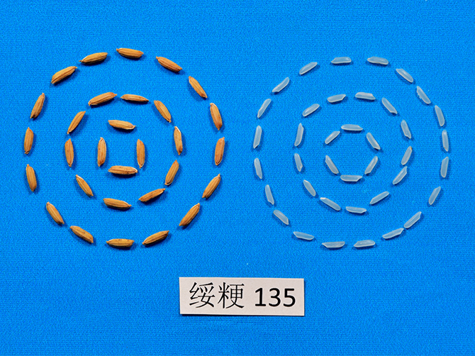黑龙江省农业科学院绥化分院水稻高产抗逆研究所,以选育适宜黑龙江省第二积温带种植的优质、高产、多抗水稻新品种为目标,以绥粳15为母本,龙洋16为父本进行有性杂交,采用花药离体培养方法选育而成。黑龙江省农业科学院绥化分院于2014年以绥粳 15为母本,龙洋16为父本进行杂交,获得杂交粒20粒。2015年在省内试验地单株种植杂交粒20粒,7月份在实验室进行花药离体培养,11月得获得单倍体植株 200株,在本单位海南试验地对 200株进行加代。2016年2月份收获 150株,对150株材料进行室内品质鉴定后保留的50个优质单株。2016年4月种植在绥化分院试验地选种圃,进行产量、抗病、耐冷鉴定,2016年秋决选出理想稳定株系绥粳135。