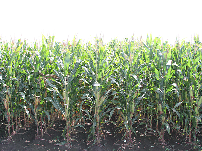 特征特性:普通玉米品种。在适应区出苗至成熟生育日数为125天左右,需≥10℃活动积温2700℃左右。幼苗期第一叶鞘绿色,叶片绿色,茎绿色。雄穗一级分枝5~8个,颖壳绿色,花丝浅紫色,花药浅紫色。株高237厘米,穗位高91厘米,成株可见19片叶。果穗筒型,穗轴红色,穗长18.7厘米,穗粗4.9厘米,穗行数14~16行,籽粒马齿型、粒色黄色,百粒重33.6克。两年品质分析结果:容重763~775克/升,粗蛋白10.18%~10.46%,粗脂肪4.24%~4.68%,粗淀粉73.42%~73.7%。抗病接种鉴定结果:中抗大斑病,抗丝黑穗病,抗茎腐病,抗镰孢穗腐病。