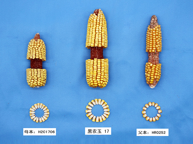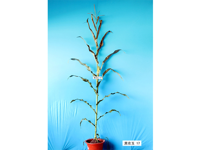 特征特性:普通玉米品种。在适应区出苗至成熟生育日数为122天左右,需≥10℃活动积温2500℃左右。幼苗期第一叶鞘浅紫色,叶片深绿色,茎绿色。雄穗一级分枝5~7个,颖壳绿色,花丝绿色,花药浅紫色。株高278厘米,穗位高103厘米,成株可见16片叶。果穗长筒型,穗轴紫红色,穗长19.5厘米,穗粗5.0厘米,穗行数18行,籽粒马齿型、粒色黄色,百粒重36.3克。两年品质分析结果:容重768~770克/升,粗蛋白10.05%~10.99%,粗脂肪3.76%~4.17%,粗淀粉72.06%~73.48%。三年抗病接种鉴定结果:中抗至感大斑病,丝黑穗病发病率2.4%~11.8%,茎腐病发病率0.0%~7.0%,高抗镰孢穗腐病。