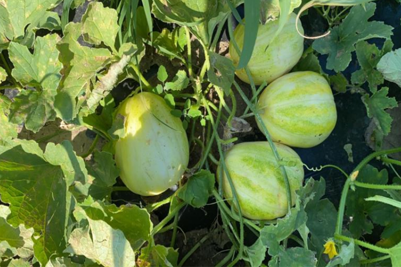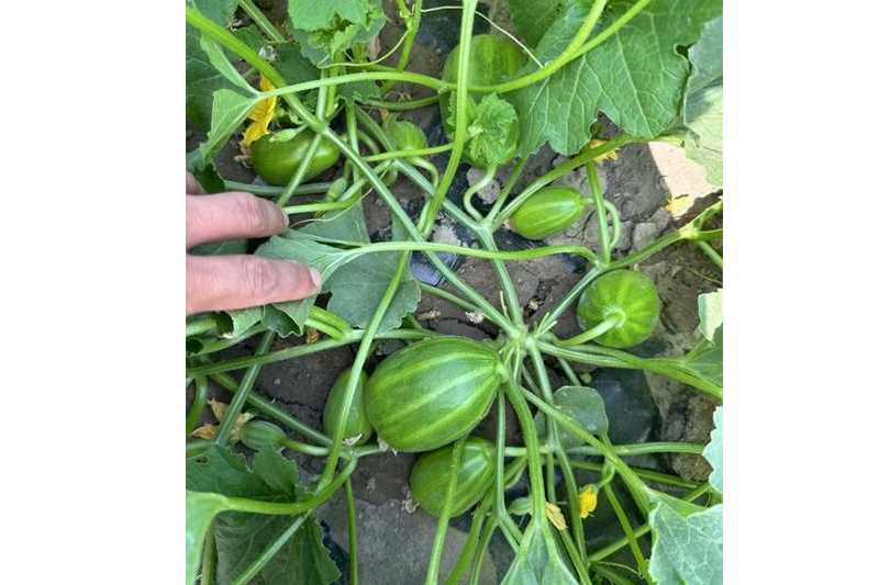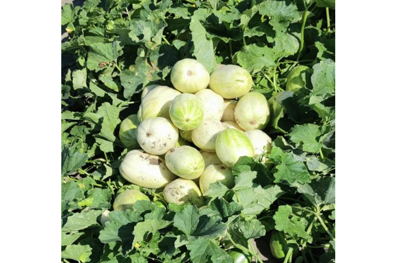 特征特性:植株生长势强,株形紧凑。全生育期69天,果实发育期29天。雄花双性花同株,第一雌花位于第3节;雌花出现的间隔节位2节;子蔓坐果为主,坐果易,果实薄皮,卵圆形,果皮底色白。无果面裂纹。单果重量0.35 千克;果肉白色,厚度2.00厘米,中心可溶性固形物含量12.6%,边缘可溶性固形物含量10.4%;种腔中,果实香味浓,口感甜脆,果实成熟后,果柄脱落难,商品果实率98.50%。