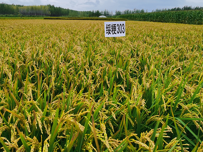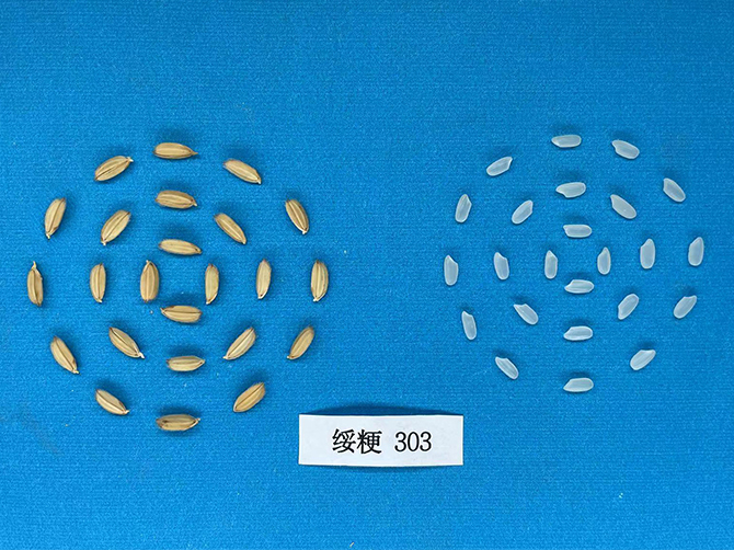 黑龙江省农业科学院绥化分院水稻品质育种研究所,以选育适宜黑龙江省第二积温带下限种植,选育选育优质、高产、抗逆水稻新品种为育种目标,绥粳303由黑龙江省农业科学院绥化分院于2003年以绥粳3号为母本,以彩稻为父本杂交,通过系谱选择方法育成。2004年~2012年在黑龙江省农业科学院绥化分院试验地进行田间种植观察选择,2013年~2017年在绥化、庆安、望奎、泰来、通河、方正、延寿、尚志、牡丹江、木兰、巴彦等11个地方进行多年多点异地鉴定试验。在异地鉴定过程中,该组合在各点均表现出高产、抗病、耐冷、抗倒伏等特点,综合性状优于对照品种。2018年~2019年参加寒地粳稻新品种选育联合体第二积温带下限熟期组品比试验。2020年~2021年参加寒地粳稻新品种选育联合体第二积温带下限熟期组区域试验;2022年参加寒地粳稻新品种选育联合体第二积温带下限熟期组生产试验。