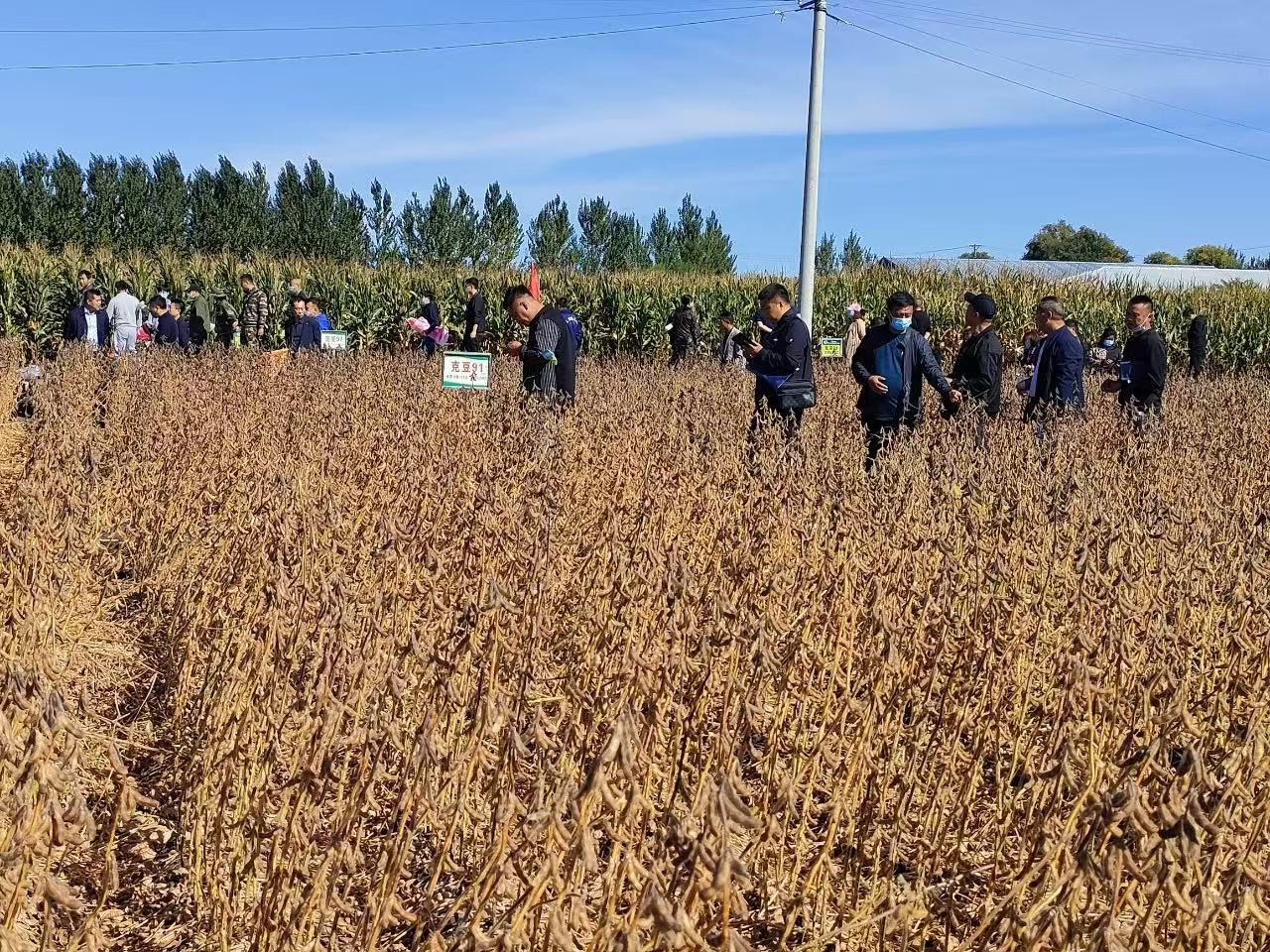 产量表现:克豆91于2020~2021年在克山分院进行初级鉴定和品种比较试验,该品种综合表现高蛋白含量、丰产性好、熟期适宜等特点。2020~2021年在牡丹江、北安、绥化等地进行多年多点鉴定试验,平均产量2749.6公斤/公顷,比对照品种北豆40平均增产8.9%。在异地鉴定过程中,该品种在各点均表现出高产、稳产、抗病、抗倒伏等特点,综合性状较对照品种北豆40表现出产量稳定、熟期相当和抗性佳等优点。2022~2023年参加黑龙江龙科联合体区域试验,平均公顷产量3168.7公斤,比对照品种北豆40平均增产7.2%。2024年生产试验,平均公顷产量3105.2公斤,比对照品种北豆40平均增产7.9%。