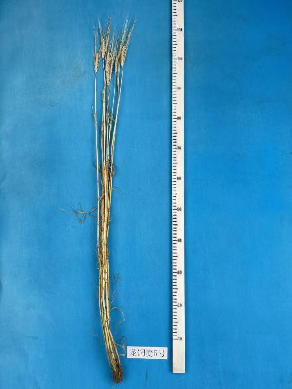 一、选育过程:母本垦啤麦7号是原黑龙江省农垦总局红兴隆科学研究所育成的二棱啤酒大麦品种,该品种为皮大麦,中熟,株高95.0厘米左右,幼苗半匍匐,株型半紧凑,千粒重46.0克左右;父本龙16D299是2020年在黑龙江省农业科学院作物资源研究所试验基地以垦啤麦2号为母本与6B98-9002-29为父本有性杂交而成F1代,属多棱皮大麦,中熟,株高85.0厘米左右,幼苗直立,株型紧凑,千粒重42.0克左右。2011年黑龙江省农业科学院作物资源研究所以垦啤麦7号为母本,龙16D299为父本进行有性杂交获得F1代种子,2012~2017年在黑龙江省农业科学院作物资源研究所试验基地经F1~F6代系谱方法选育,于2017年决选,决选代号为2017F6-2006,2018年命名为龙饲麦5号。2018~2019年进行产量鉴定和异地鉴定。2020~2021年完成黑龙江省和内蒙古呼伦贝市两个周期的品种适应性试验。
