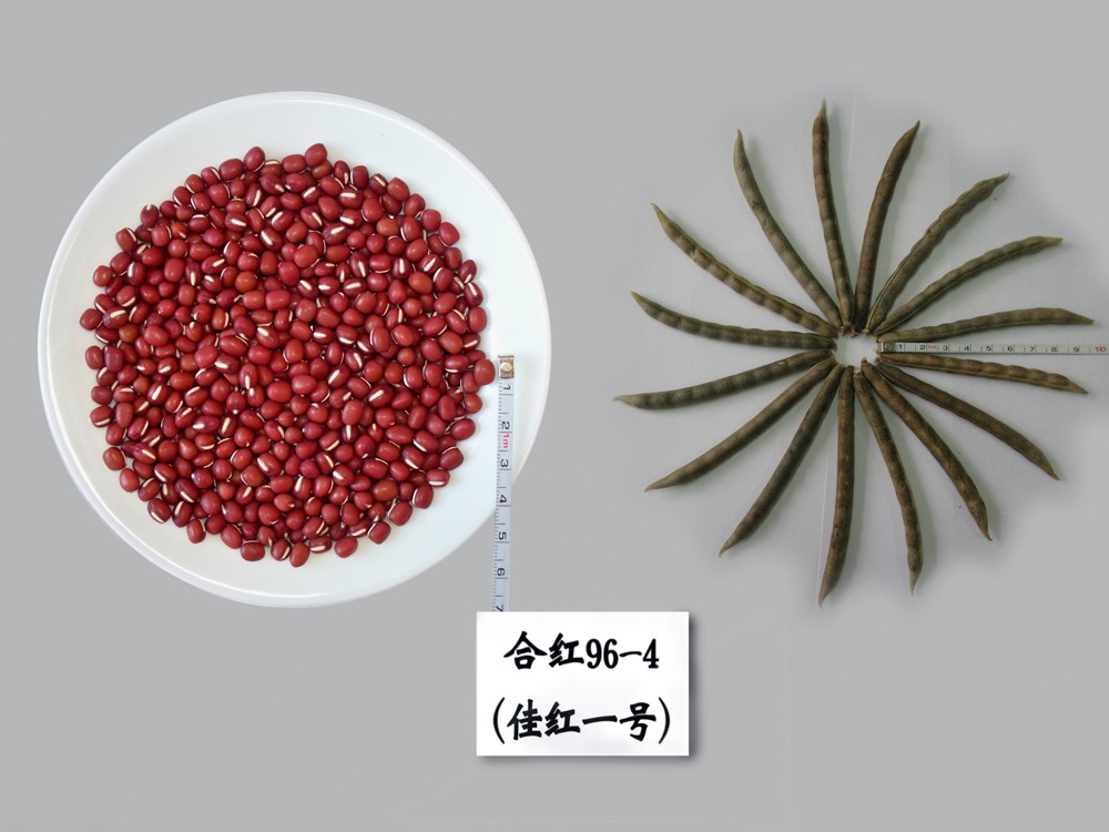 佳红1号红小豆品种由黑龙江省农业科学院佳木斯分院以日本早生为母本,宝清红为父本,通过有性杂交选育而成。2009年通过黑龙江省非主要农作物登记审定品种。该品种株高55~65cm左右,有限结荚习性,直立生长,幼茎绿色,秆强、抗倒伏。主茎分枝3~4个。叶片卵圆形,花黄色。单株结荚22~32个,直筒形,单荚粒数约6.8粒,成熟荚褐色,荚成熟一致,不炸荚。籽粒短圆柱形,种皮鲜红色,百粒重16~17g。在适应区,出苗至成熟生育日数93天左右,需≥10℃活动积温1927.3℃左右。品质分析:淀粉含量53.26%,蛋白质含量21.73%,脂肪含量0.38%。2007-2008年2年10点区域试验平均公顷产量1530.9kg,较对照品种龙小豆2号平均增产13.42%;2009年5点生产试验平均公顷产量2154.6kg,较对照品种龙小豆2号平均增产14.35%。适宜黑龙江省第二、三积温带种植,该品种推广面积没有统计数据。