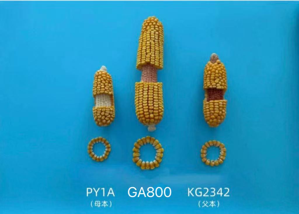 品种来源:GA800以利玉米自交系PY1A为母本和玉米自交系KG2342为父本,杂交方法选育而成。