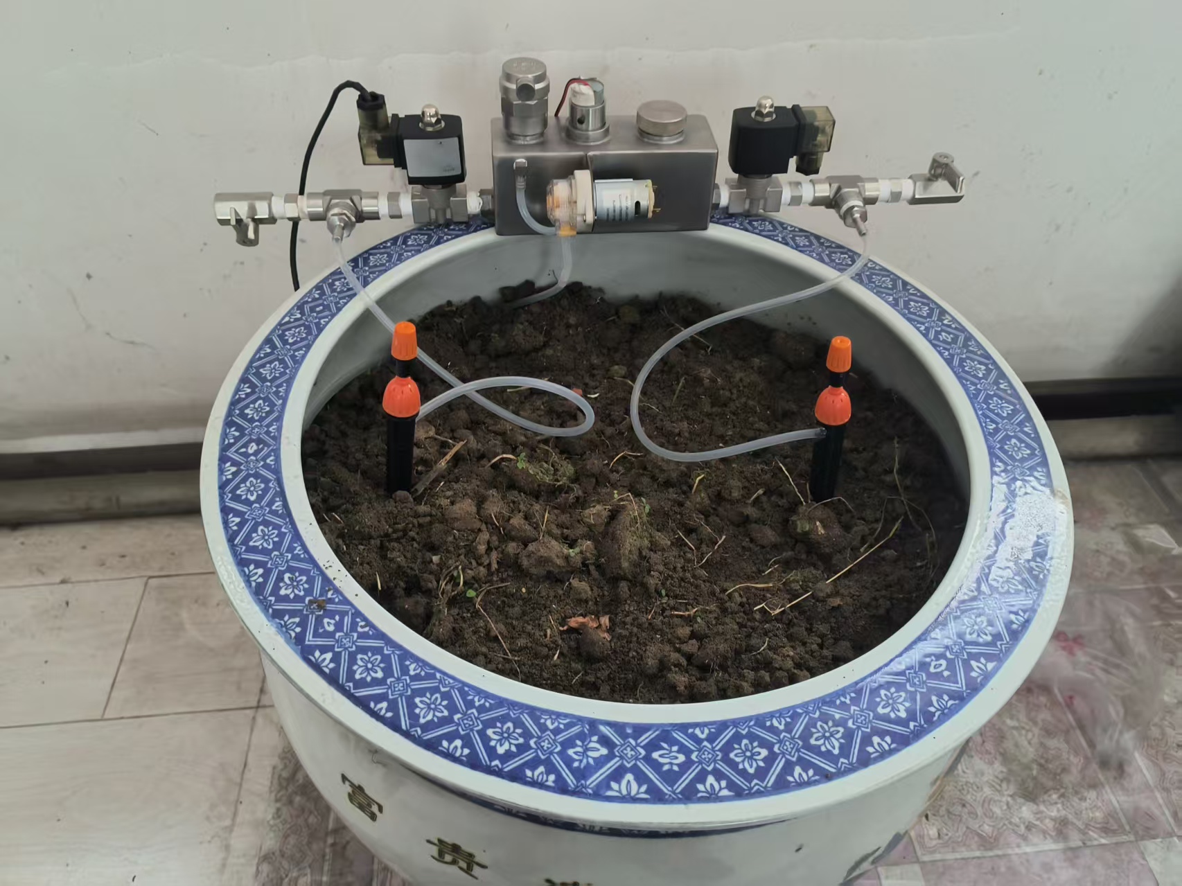 本发明涉及滴灌装置技术领域,具体为一种基于水资源再利用的高效水肥一体化滴灌装置。在植物种植的过程中需要使用滴灌装置进行不定时浇水工作,因此,市场上对于一些浇水用滴灌装置有了一定的要求。但是,现有的滴灌装置较为简单,浇水不够均匀,而现有滴喷装置内大多没有设置排气结构,影响滴喷效果;现有的滴灌装置大多没有设置水资源再利用结构,滴灌时会浪费较多的水资源;而现有的滴灌装置仅仅具有浇水功能,不能配合加药使用。本发明的目的在于提供一种基于水资源再利用的高效水肥一体化滴灌装置,以解决上述背景技术中提出没有设置排气结构,影响滴喷效果;没有设置水资源再利用结构,滴灌时会浪费较多的水资源,仅仅具有浇水功能,不能配合加药使用的问题。